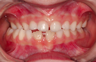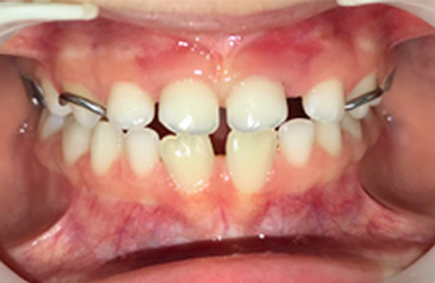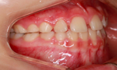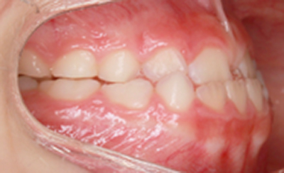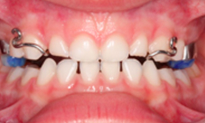 As imagens abaixo demonstram o mesmo caso de mordida cruzada anterior com fotografias intra orais laterais. Observe que os incisivos superiores, que se encontravam inicialmente atrás dos incisivos inferiores, passou a ocluir corretamente.