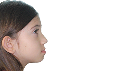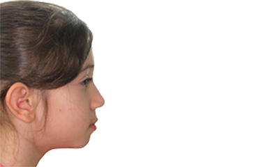 As imagens abaixo demonstram a projeção mandibular de uma paciente com mordida cruzada anterior com fotografias tiradas de perfil lateral. Observe que o tratamento ortodôntico precoce possibilitou a correção do perfil mandibular da paciente sem necessidade de procedimentos mais incisivos.